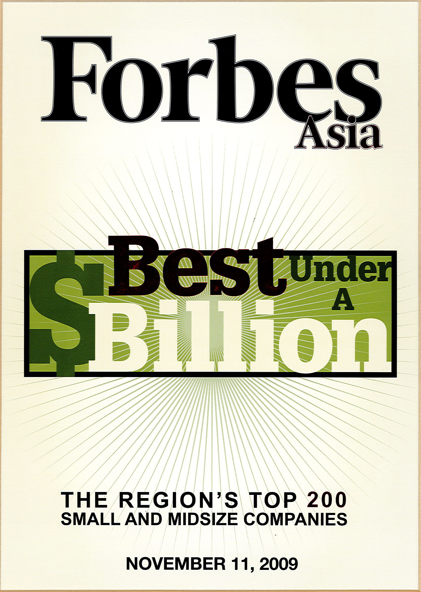 2011KFima was conferred as one of Forbes Asia's "200 Best under a Billion" by the Forbes business magazine.
